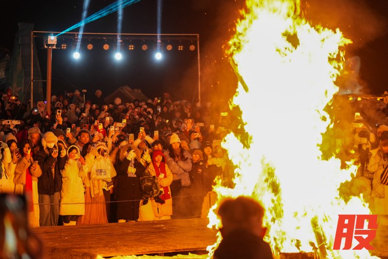 这是2月4日拍摄的新疆阿勒泰地区禾木村篝火晚会现场。 新华社记者 徐宏岩 摄