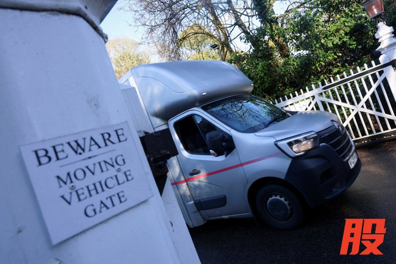 这是2月4日在英国温莎城堡地界内的“王室小屋”附近拍摄的搬家车辆。\n 新华社/路透