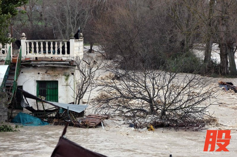 这是2月5日在西班牙肯塔尔拍摄的被洪水包围的建筑物。 新华社/法新