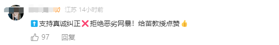 对此,不少网友支持苗教授的做法↓↓