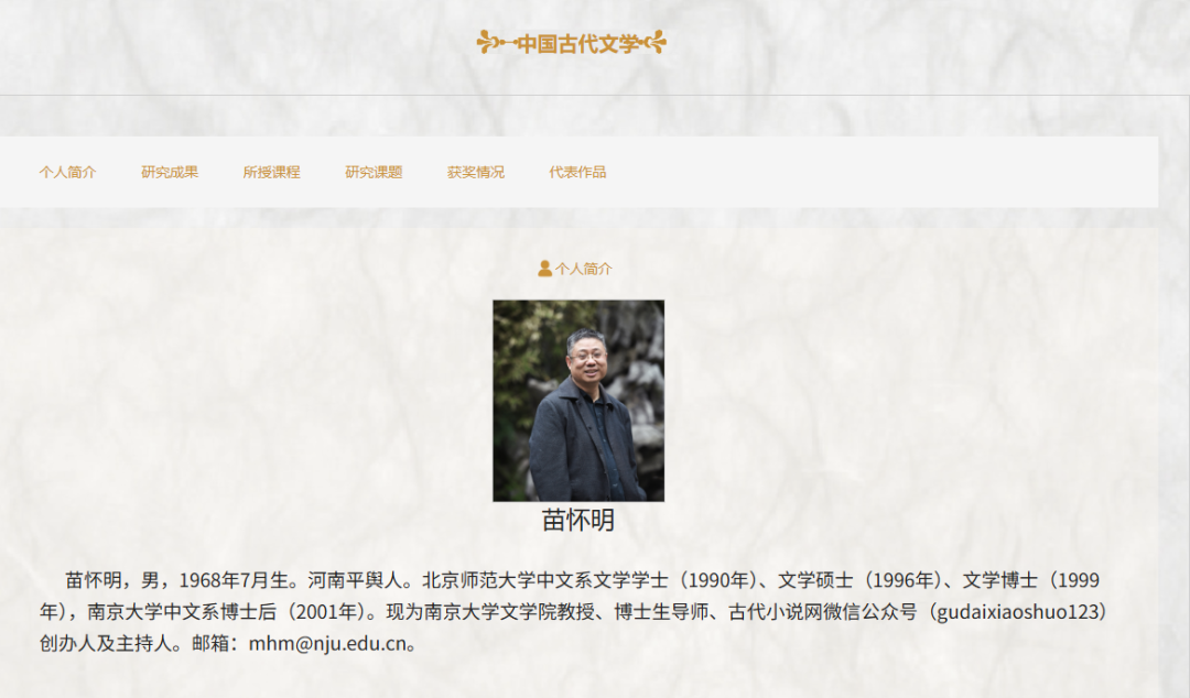 中国青年报记者在南京大学文学院网站看到,苗怀明教授现为南京大学文学院教授、博士生导师,在《文学遗产》、《文献》、《红楼梦学刊》、《明清小说研究》等各类刊物发表学术论文一百多篇。